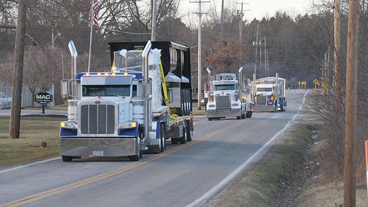 A caravan of MAC Trailer Enterprises trailers.