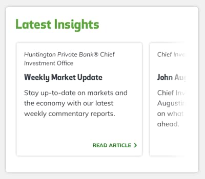 Minimum investment or deposit balance criteria apply with respect to the Huntington Private Bank. Please contact a Huntington Private Bank colleague for more information on eligibility requirements.